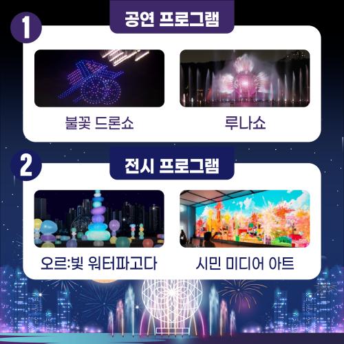 - 특징: 불꽃드론쇼와 다양한 체험,전시,공연 프로그램이 마련되어 있습니다.