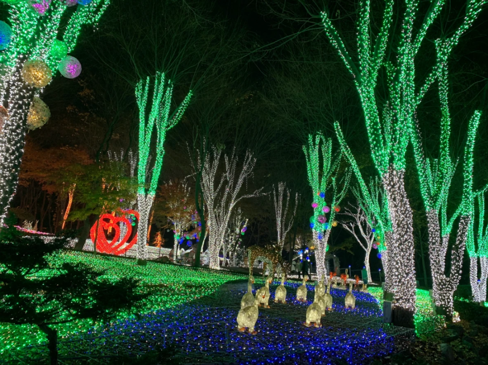 - 특징: 동물과 하트 모양의 테마 조명으로 꾸며진 다양한 포토존. 자연과 어우러진 공간에서 인생샷을 찍기 좋은 장소.