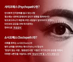 1. 공감능력결여;사이코패스는 타인의 감정을 이해하고 공감능력은 결여되어 있습니다.