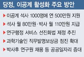 정부와 국민의 힘이 협의한 이공계 석사 장학금은 1000명의 이공계 석사 과정 학생들에게 연간 500만 원을 지원합니다. 연구에 몰입할 수 있도록 연구생활장려금도 추가 지원되며, 과학기술 인재 육성을 통해 국가 경쟁력을 강화하는 것이 목적입니다.