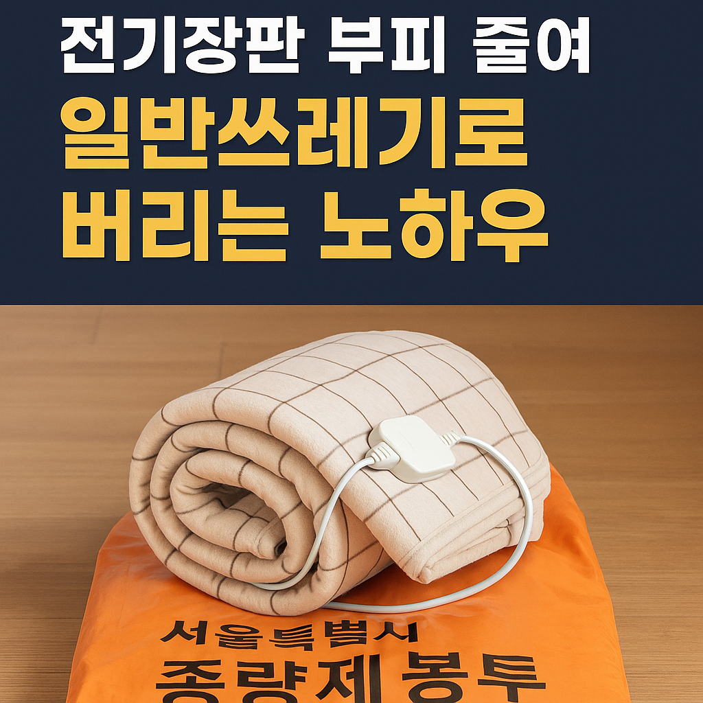 1인용 소형 장판 완전히 말아서 50L 종량제 봉투에 그대로 투입