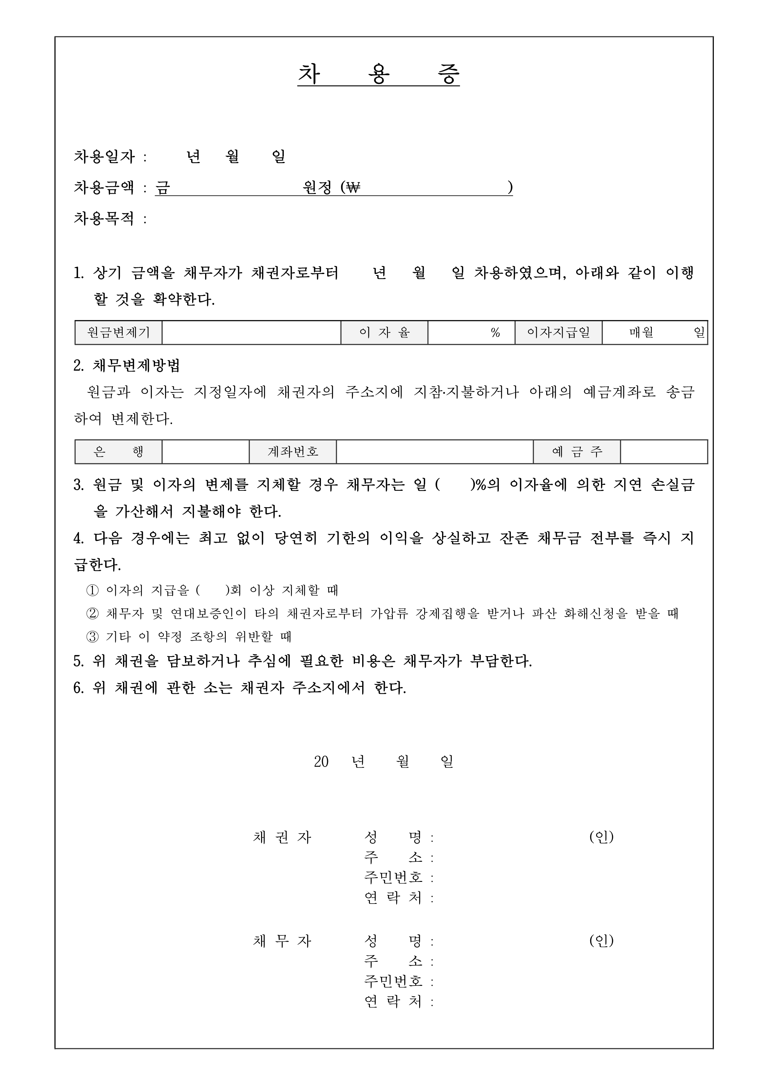 - 내용: 독특하고 실용적인 차용증 서식을 무료로 제공합니다.