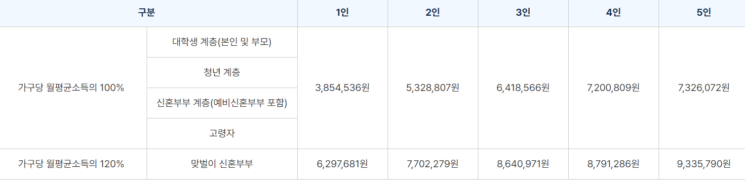 - 가구당 월소득 100% 이하일 것