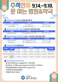 - 119 구급상황관리센터: 긴급 상황 시 응급처치 안내 및 구급차 호출 연휴 기간 동안 응급실은 위급한 환자들을 위해 24시간 운영되며, 언제든지 긴급한 상황에 대비할 수 있도록 철저한 준비가 되어 있습니다.