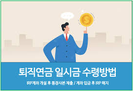 퇴직 시점에서 적립된 모든 연금을 한 번에 수령하는 방식입니다. 일시금 받으면 큰 금액을 한꺼번에 받을 수 있지만
