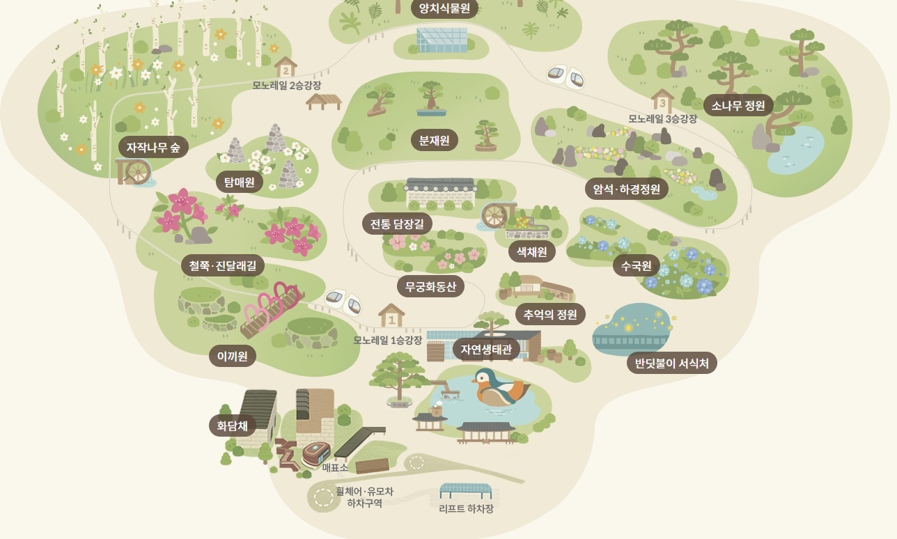 - 입장 : 예약한 시간에 맞춰 화담숲에 도착하여, QR코드를 제시하면 모노레일 탑승이 가능합니다.