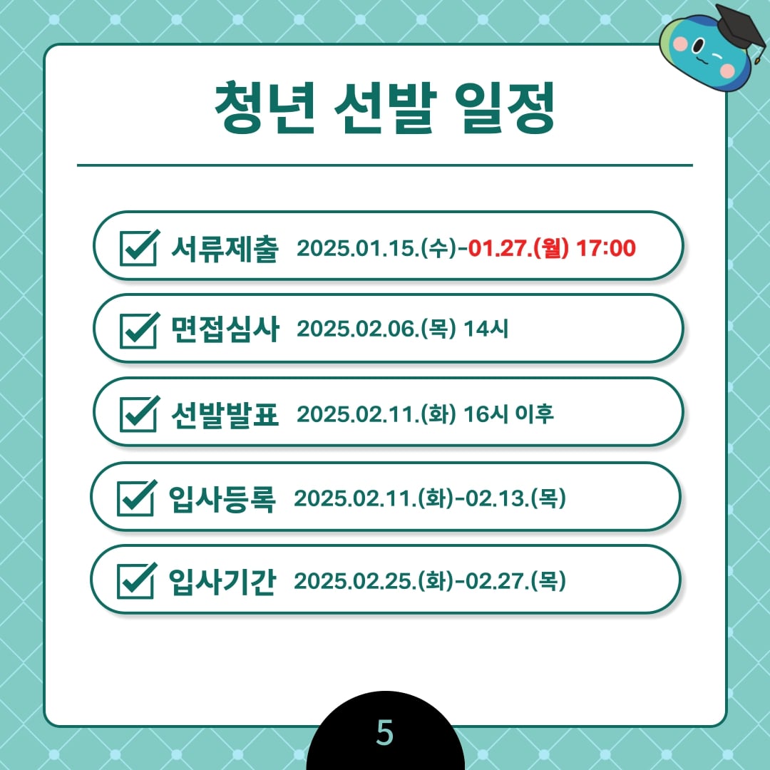 - 모집 기간: 2025년 1월 15일(수)부터 1월 27일(월) 오후 5시까지