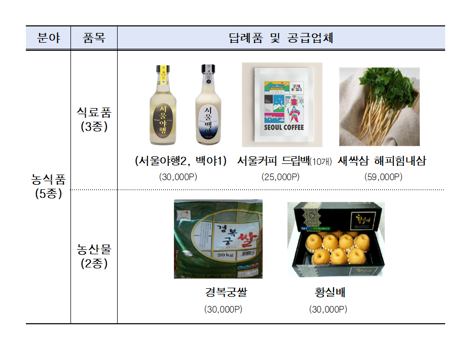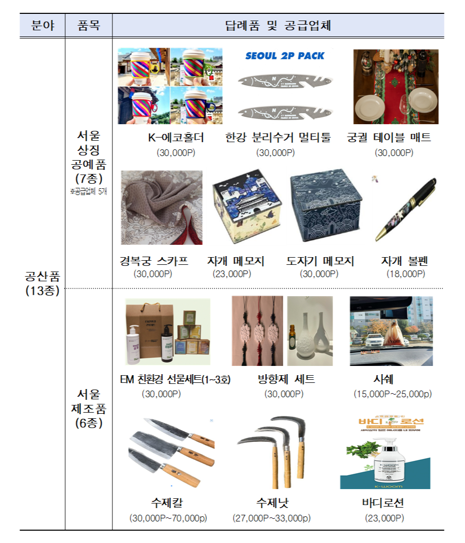 서울의 다양한 특산품이 포함되며, 기부자들의 취향을 고려한 선택이 가능합니다.
