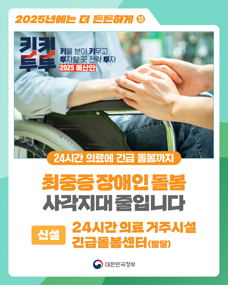 2025년 장애인 복지 정책은 예산 증액과 함께 다양한 프로그램을 통해 장애인의 권리 증진과 생활 향상을 도모하고 있습니다. 특히, 최중증 장애인을 위한 돌봄 체계 구축, 일자리 확대, 발달장애인 및 장애아동 지원 강화 등은 장애인의 삶의 질을 높이고 사회 통합을 촉진하는 데 중요한 역할을 할 것입니다. 앞으로도 이러한 정책들이 지속적으로 발전하여, 모든 장애인이 차별 없이 사회에 참여하고 자립할 수 있는 환경이 조성되기를 기대합니다.
